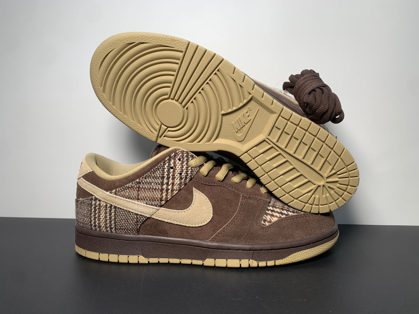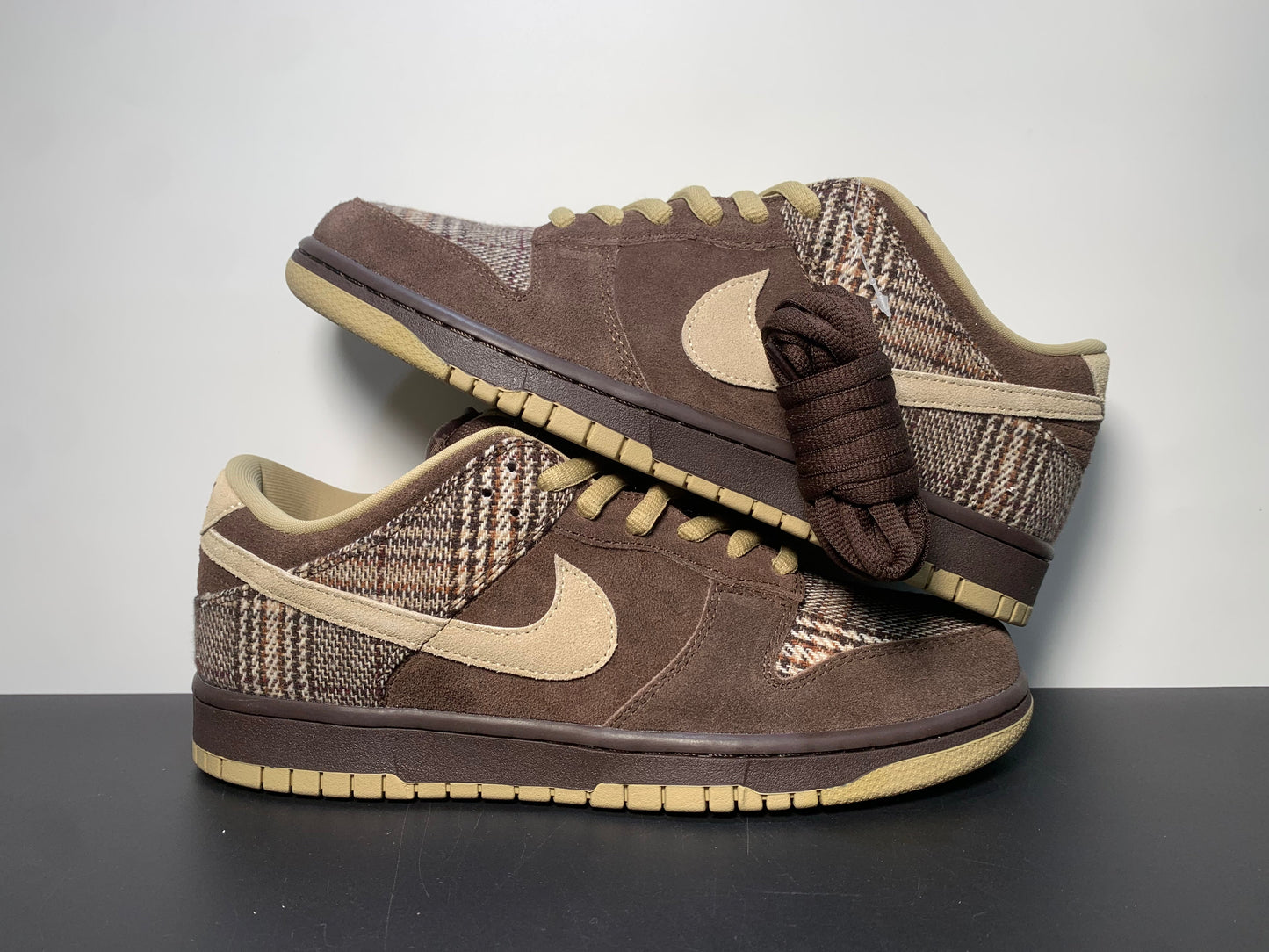 The Dunk Low Pro SB ‘Tweed’ lives up to its name with plaid wool fabrication on the shoe’s toe box and heel overlay. The rest of the upper is built with Baroque Brown suede, contrasted by hits of Mushroom on the oval laces, suede Swoosh and rubber outsole. The low-top released in September 2004 alongside an accompanying ‘Tweed’ high-top.