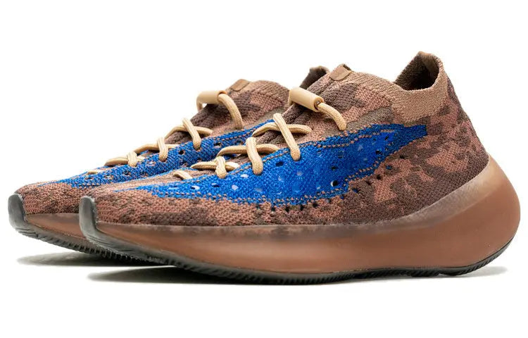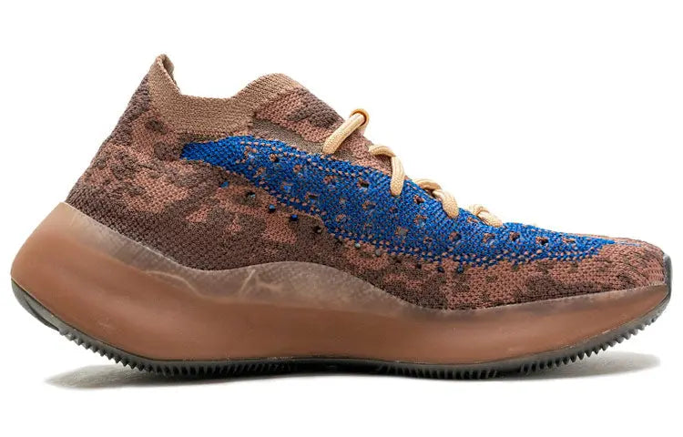 This Yeezy 380 Azure features an elastic upper from Primeknit with a striking blue monofilament stripe. The beige shoelaces to the upper for light contrast highlights a semi-translucent brown sole unit.