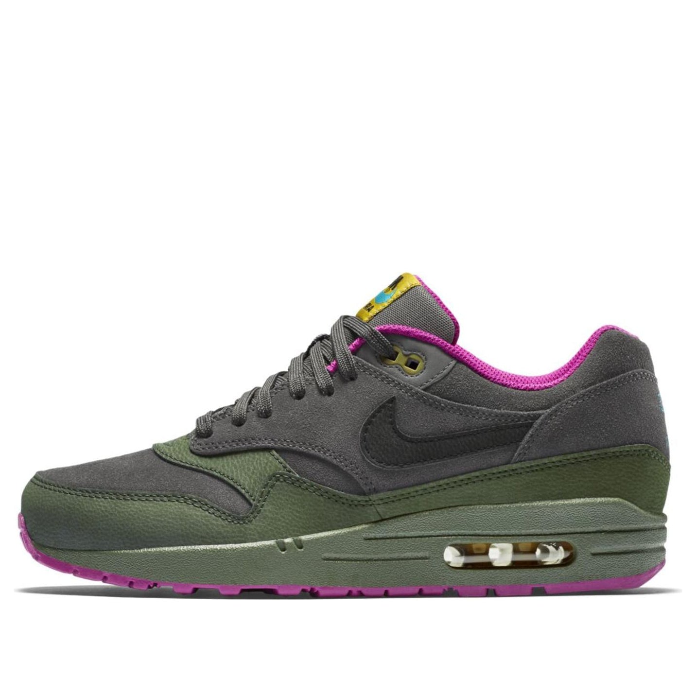 Nike Air Max 1 Leather 'Pewter Carbon Green' Dark Pewter/Black/Carbon Green/Fuchsia Flash 654466-008