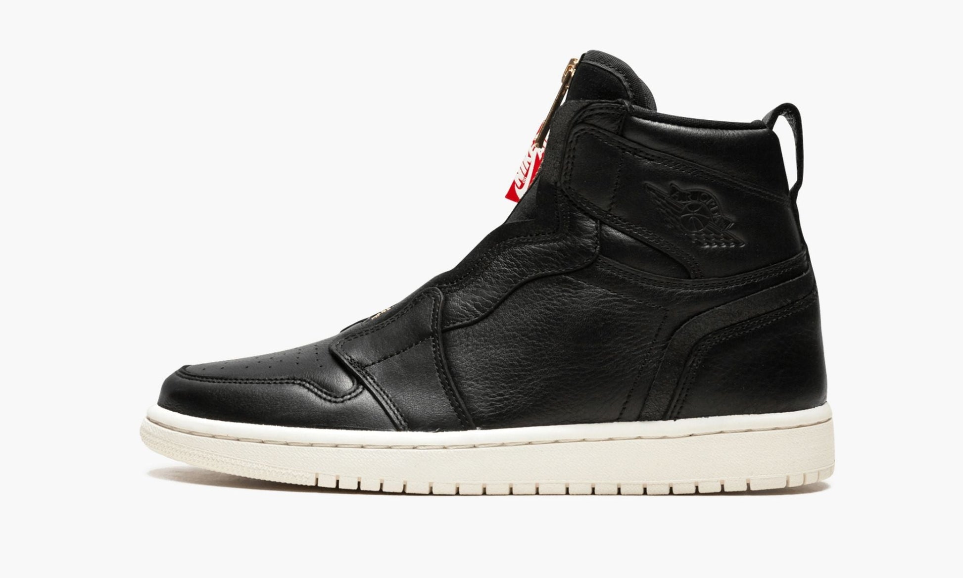 Designed just for women, the Air Jordan 1 High Zip sneaker is a fresh take on the classic Air Jordan style. A premium leather upper adds a sleek, supple look to this sneaker. Classic Air cushioning and a lightweight midsole keep the wearer in lasting day-to-night comfort. Accentuated with an embossed Air Jordan logo on the side panel, a gold zipper, and a bright red Nike Air label tag, the hi-top Air Jordan 1 High Zip makes for a fashion-forward footwear.