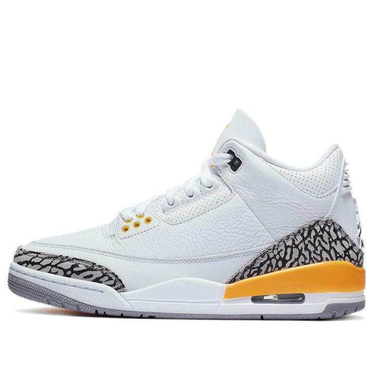 Nike reworks the women's Air Jordan 3 with the perfect summer-ready hue: "Laser Orange". The upper is crafted with white leather and accented by the signature elephant print panels. Laser Orange graces the sockliner, eyelets and midsole, giving a refreshed look.